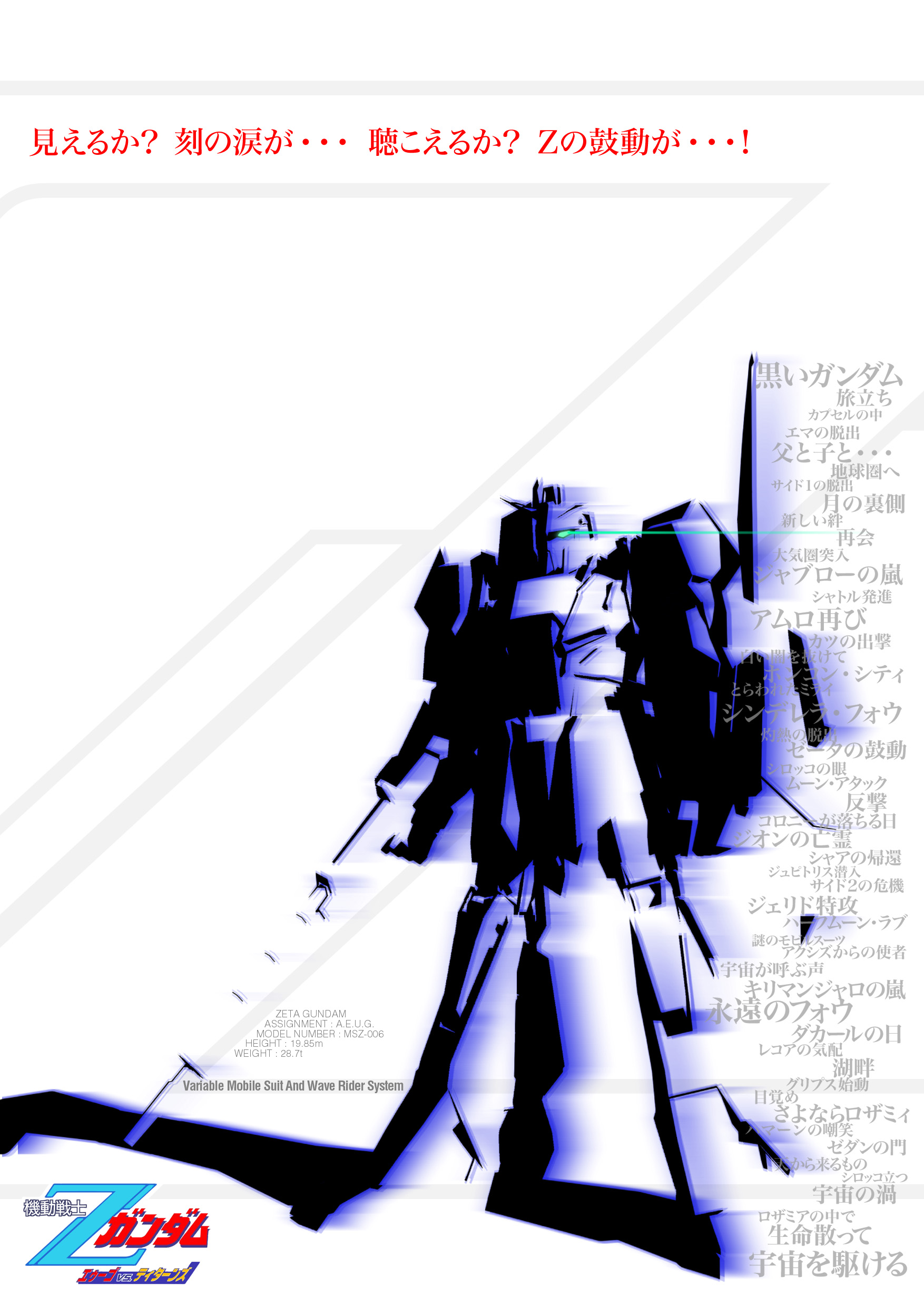 ばそから頼まれ制作したポスターです。実はZは3Dです。まぁベースにしかなっていないような感じですが。キャッチコピーは気に入ってます。これを思いついたときはかなりハイテンションでした(笑)。横に並べたサブタイトルの中で「永遠のフォウ」が一番大きいのはつっこみなしで。
